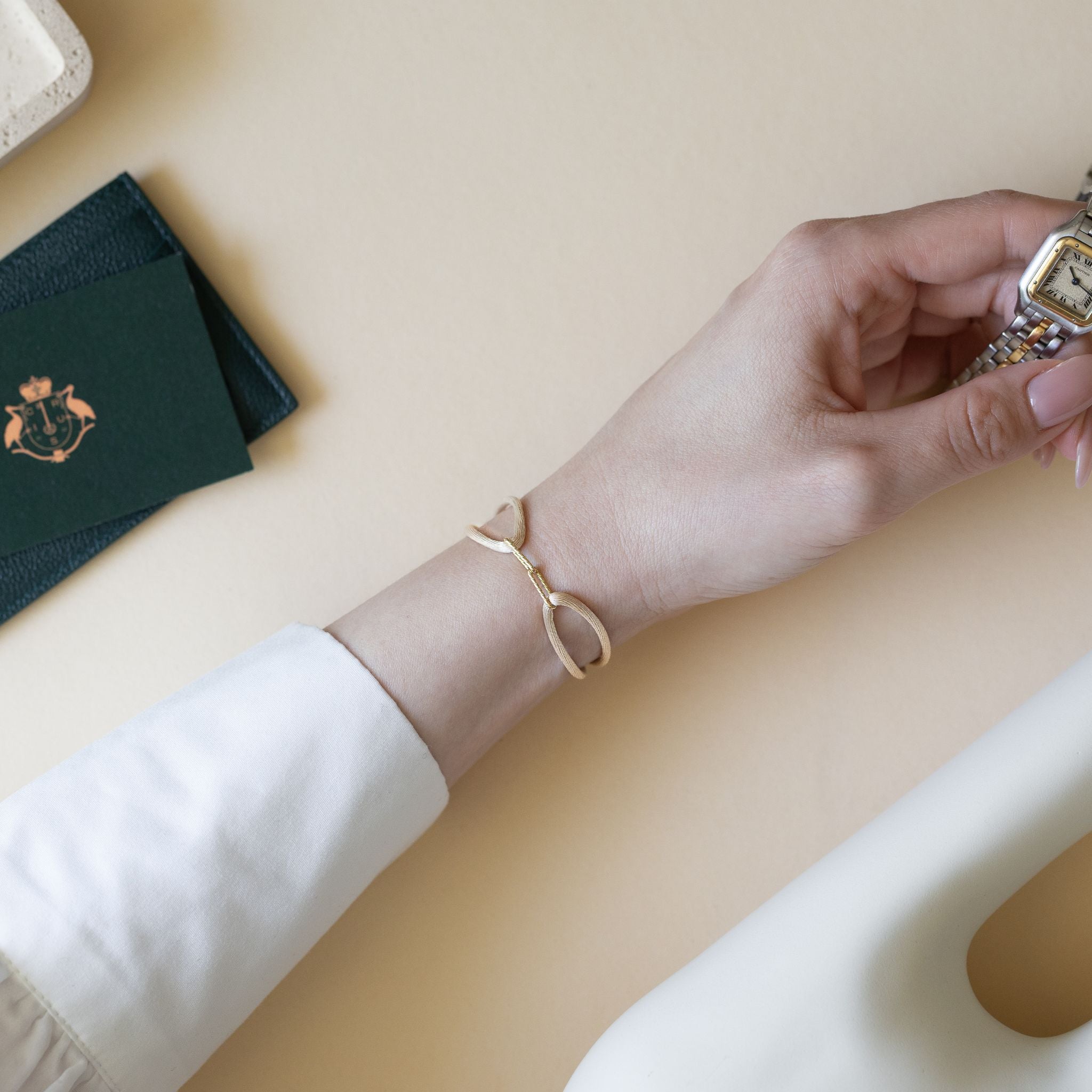 Crafted with genuine 14K gold and premium featherlight satin. Designed to adjust effortlessly, soft enough to forget you’re wearing it and unforgettable to anyone else.